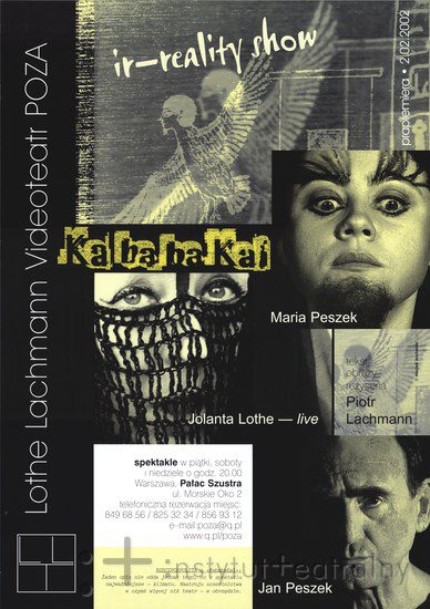 Teatr Jolanty Lothe i Piotra Lachmanna należy do niewielu miejsc, gdzie telewizor - totem masowej kultury - jest instrumentem sztuki. Telewizory widuję coraz częściej na scenach teatrów. Są z reguły symbolem przemocy, chaosu informacyjnego i całego zła, jakie przypisuje się mediom. W warszawskim eksperymentalnym teatrze telewizor pełni przeciwną rolę: służy ożywianiu. Od "Akt-orki" po najnowszą wersję "KaBaKai" wg egipskiej "Księgi Umarłych" - Piotr Lachmann i Jolanta Lothe zajmują się ciągle tym samym tematem: tworzeniem kopii, elektronicznych masek i sobowtórów człowieka, potrzebnych, aby przezwyciężyć śmierć. Doświadczenia z wideoteatrem Piotr Lachmann zaczynał w połowie lat 80. od dwóch monitorów, na których pojawiała się na zmianę twarz aktorki. Dzisiaj na scence w Pałacyku Szustra kieruje podczas spektaklu pracą siedmiu monitorów i magnetowidów jednocześnie. W tym teatrze historia zatacza wielkie koło: posługując się medium XX wieku Lachmann i Lothe wywołują duchy sprzed tysięcy lat. Spektakl "KaBaKai" powstał na podstawie "Księgi Umarłych" - staroegipskiego papirusu sprzed ponad trzech tysięcy lat. "Księgi Umarłych Piastunki Kai" to przewodnik, który miał doprowadzić zmarłego do nowego wiecznego życia. Lachmann pokazuje tę wędrówkę na wideo. Spektakl przypomina transmisję z "Boskiej Komedii" Dantego, a muzyka Piotra Mossa z niezwykłymi partiami wokalnymi Jadwigi Rappe wprowadza klimat rytuału...."