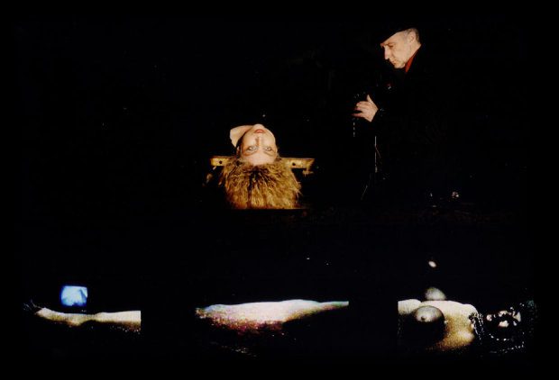 W swoim manifeście “Nad-dramat” Iwan Goli, żądając radykalnie jak przystało na poetę wprowadzenia do teatru wszelkiej techniki wywołującej wrażenie maski, nazywa gramofon, podówczas (1919) sprzęt najnowszej generacji “maską głosu”. W to nam graj. Monachijska recenzentka spektaklu “Akt-orka IV”, Sabine Adler zauważyła, że w naszym videoteatrze “ekran przejmuje funkcję klasycznej maski teatralnej, która w rozmaitych formach pokazuje się scenie i monitorach”. W to nam graj. W fundamentalnym tekście Karla Kerenyi’go “Człowiek i maska” (1951) mowa jest o masce jako o “pierwotnym sprzęcie”, sprzęcie misteriów, ma się rozumieć. I w to nam graj. Sprzęt audiowizualny, wszystkie nasze małe “elektroniczne organizmy”, jak empatycznie nazwała Jolanta Lothe kamery, magnetowidy, monitory, miksery, przetwarzacze obrazu i głosu i parę tajemniczych, czarnych skrzyneczek wykonanych na zapleczu wielkiej telewizji przez idącego za naszymi pomysłami inżyniera, służą nam do elektronicznych “misteriów” pół-sacrum, pół profanum. Maski użyte przez nas w gorszącym ascetów sceny nadmiarze, nawiązywały bowiem skrycie do starych i nowych “misteriów”, również maski najbardziej trywialne, jak chociażby maska Piggy lub M. Monroe, sterane po ponad dwustu przedstawieniach “Akt-orek”. Tę pierwszą wiążą zresztą z Eleuzis, miejscem najsłynniejszych misteriów, gdzieśmy ją skonfrontowali z resztkami nie do końca wygasłego sanktuarium Demeter, stosunki dość zagmatwane, ale nam wiadome i już ujawnione.